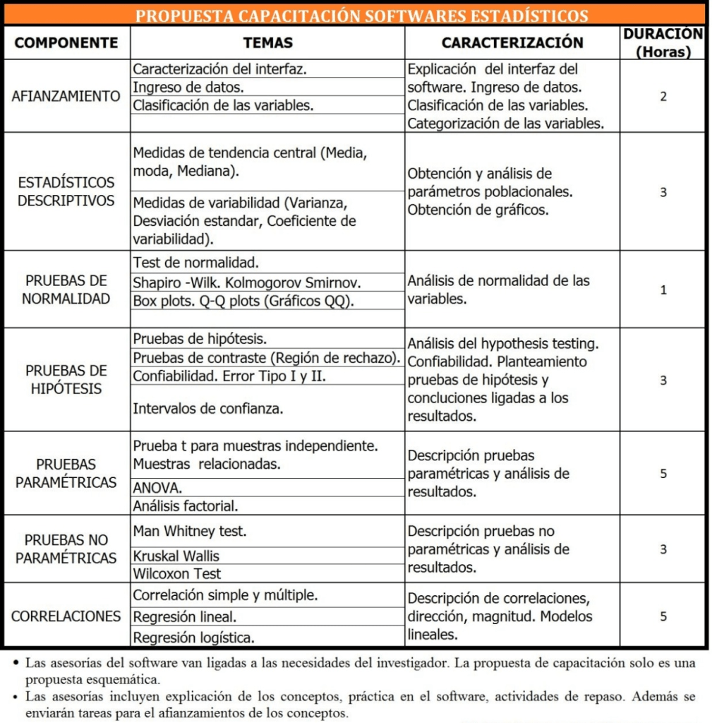 CAPACITACIÓN Y CLASES SPSS, R STUDIO EPIINFO, MINITAB, EXCEL, STATGRAPHICS.